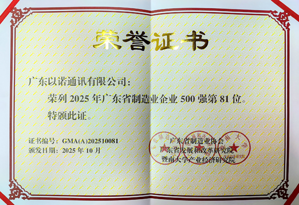 近日,在“2025年廣東省制造業(yè)500強企業(yè)峰會”上,福日電子成員企業(yè)以諾通訊憑借堅實的產(chǎn)業(yè)基礎與穩(wěn)健增長的業(yè)績表現(xiàn),成功入選“2025年廣東省制造業(yè)企業(yè)500強”,位列第81位,較去年提升14位,展現(xiàn)出公司在高質(zhì)量發(fā)展道路上的強勁勢頭與日益突出的行業(yè)影響力。